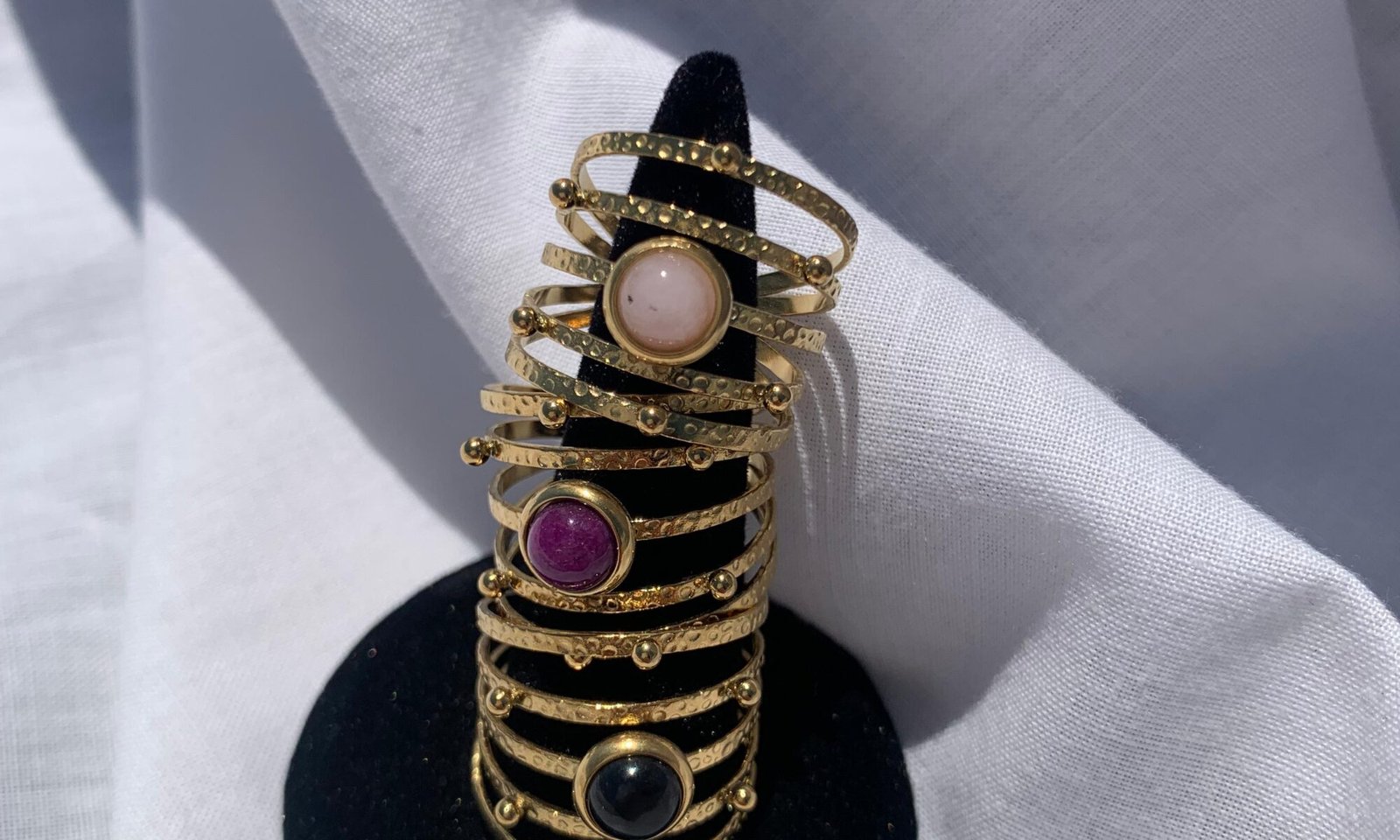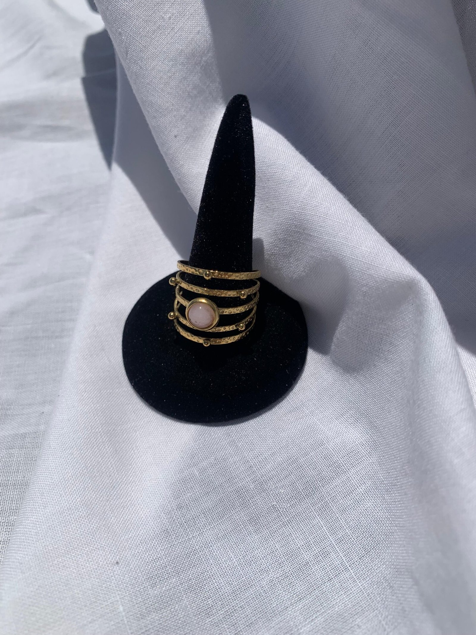 En resumen, el anillo Arancel con perlitas y piedra natural es una pieza de joyería que combina elegancia, versatilidad y confort. Ideal como regalo o como un capricho personal, es mucho más que un simple accesorio; es una celebración de tu estilo único y una hermosa adición a cualquier colección de joyas.
